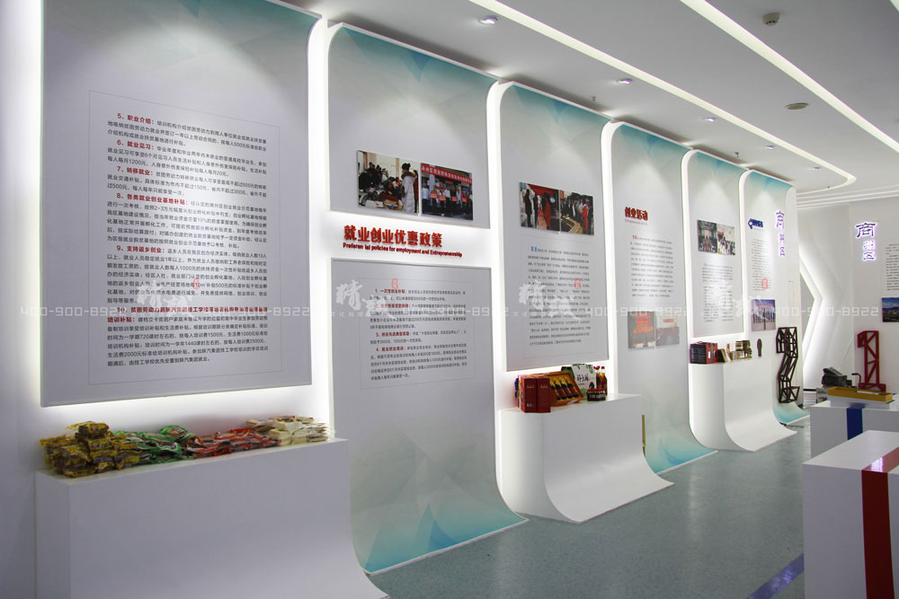 近日,商州区创业就业展厅在陕西精诚展览装饰有限公司的全力奋战下,顺利开馆迎宾。本馆主要展示商州人民在创新创业的征程上所取得的丰硕成果,同时凸出展示商州区大众创业、万众创新的发展宏图,人文商州和创业就业相融并进,推动了传统产业的升级转型,带动新兴产业发展,改变社会的生产方式和生活方式,集中体现商州区超前的发展战略。