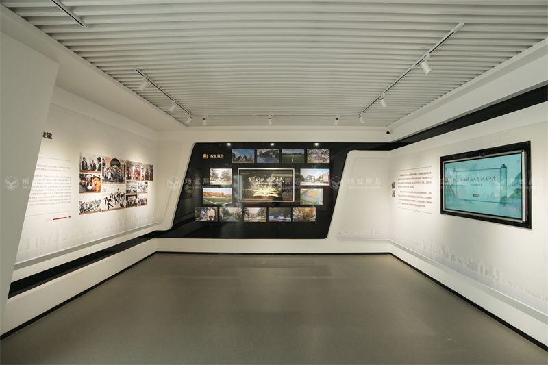 进入新时期,校史馆通过丰富展陈手段,展示出陕师大附中的强音。形象生动的足球剪影、婀娜多姿的文艺汇演多媒体呈现、英姿飒爽的海军航空班大幅图文,以及一件件做工精致的荣誉奖牌,在时代华章的乐曲声中显得朝气蓬勃。陕西师范大学附属中学校史馆设计施工